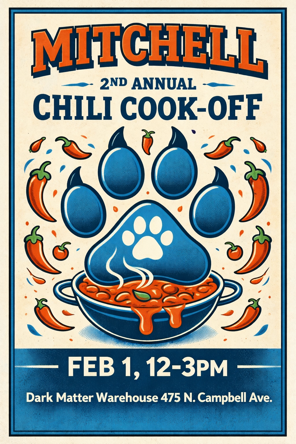 Cold weather got you down? We have the perfect way to turn up the heat, all while raising money for Friends of Mitchell. Join us for the Mitchell 2nd Annual Chili Cook-Off.